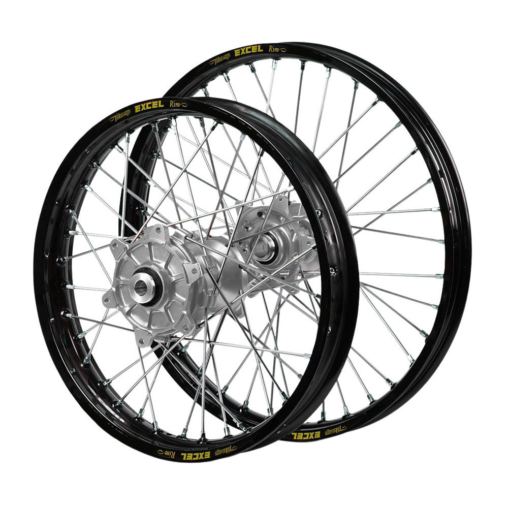 Husaberg FC 550 2003-2012 (21*1.60 / 18*2.15) Haan Cush Drive Silver Hubs / Excel Black Rims Wheel Set