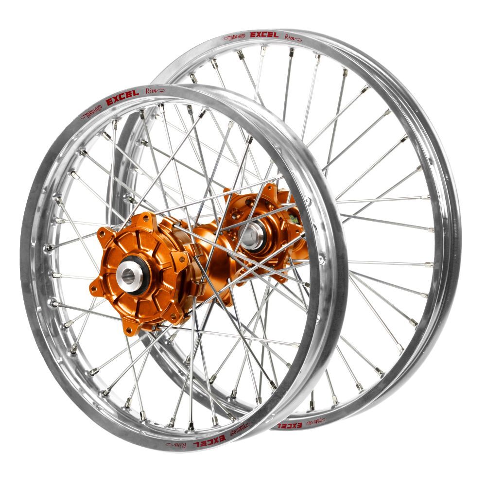 Husaberg FC 550 2003-2012 (21*1.60 / 18*2.15) Haan Cush Drive Orange Hubs / Excel Silver Rims Wheel Set