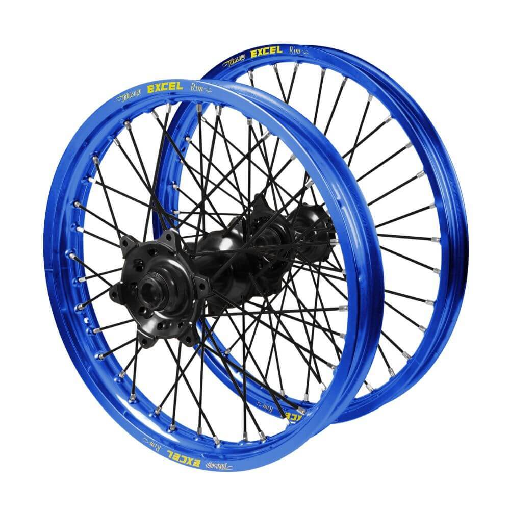 - Kawasaki KX 250 F 2006-2020 (21*1.60 / 19*1.85 OE) Haan Black Hubs / Excel Blue Rims / Black Spokes Wheel Set