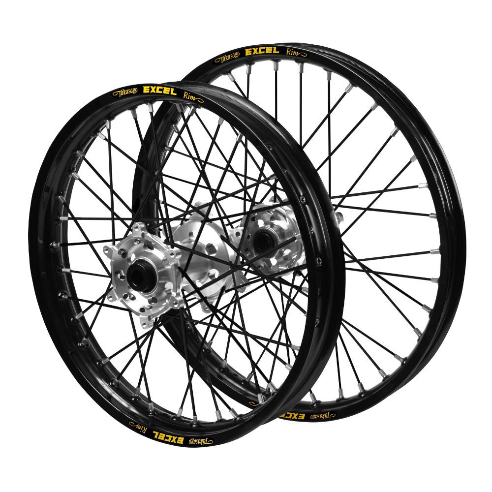 - Kawasaki KX 450 F 2019-2026 (21*1.60 / 18*2.15) Haan Silver Hubs / Excel Black Rims / Black Spokes Wheel Set