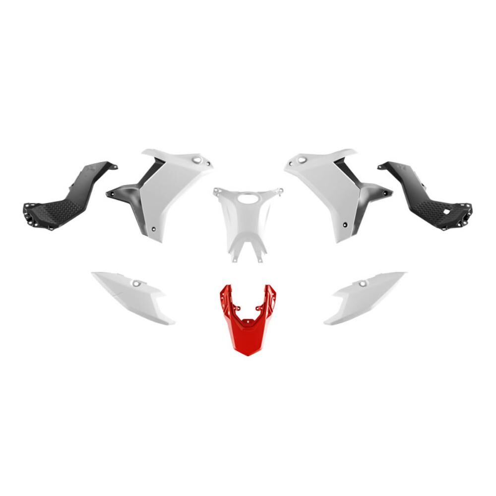 - It is composed by two shrouds, gas tank cover, two central side panels, two rear number plate side panels and rear fender.