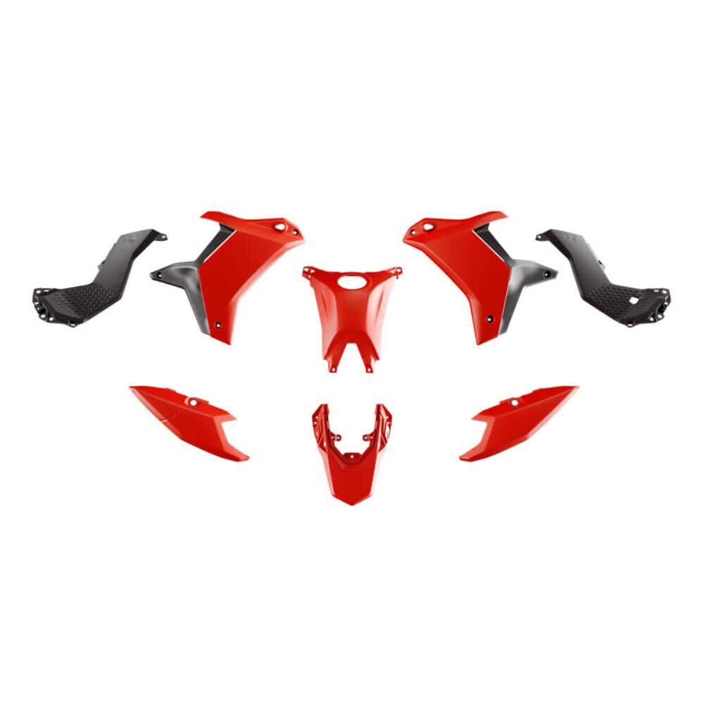 - It is composed by two shrouds, gas tank cover, two central side panels, two rear number plate side panels and rear fender.